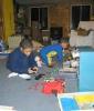 That evening the church hosted a SuperBowl get-together, at which I dropped John off, while David, Isaac, and I built with Lego. (See the third photo above.) You can see that our new family room has more than enough space to spread the Lego boxes out while we build. The pinball machine and pellet stove are in the background, as are sundry other items that have yet to be unpacked. Nichelle is going to kill me when she sees which photo I’ve posted, but the fun is worth it.
